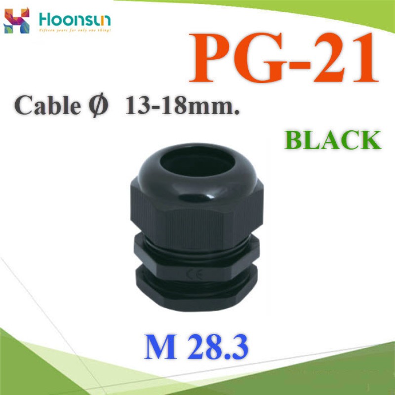 : เคเบิ้ลแกลนด์ PG21 cable gland Range 13-18 mm. มีซีลยางกันน้ำ สีดำ Stock 496