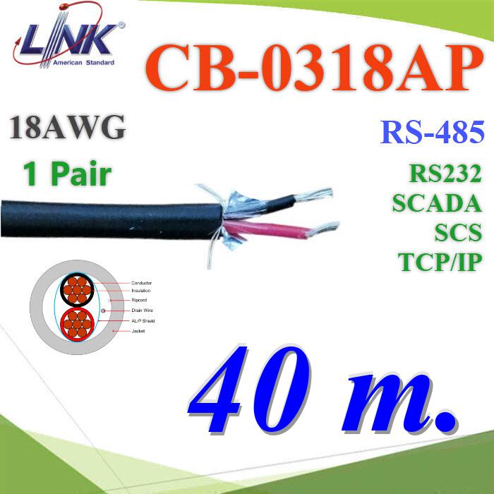 LINK-CB0318AP-1x40m : 40 เมตร สายสัญญาณ RS485 CB-0318AAP 1คู่ 18AWG ใช้ภายใน ภายนอก RS232 LINK   สต็อก 0