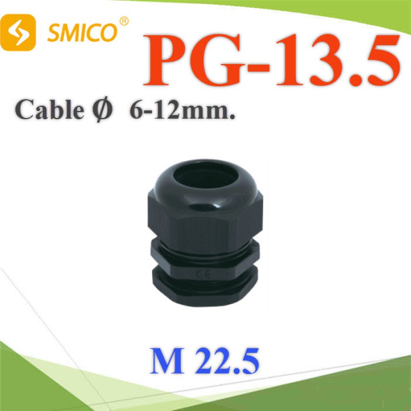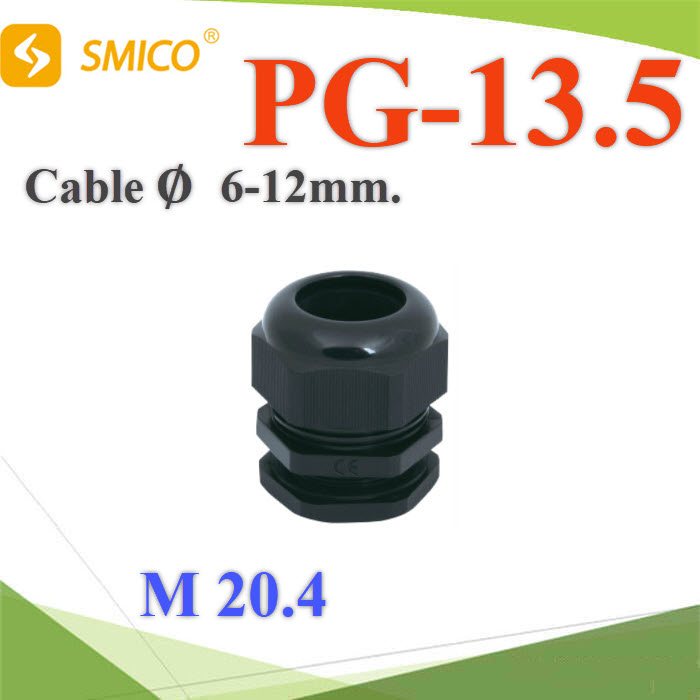 เคเบิ้ลแกลนด์ PG13.5 cable gland Range 6-12 mm. มีซีลยางกันน้ำ สีดำ
