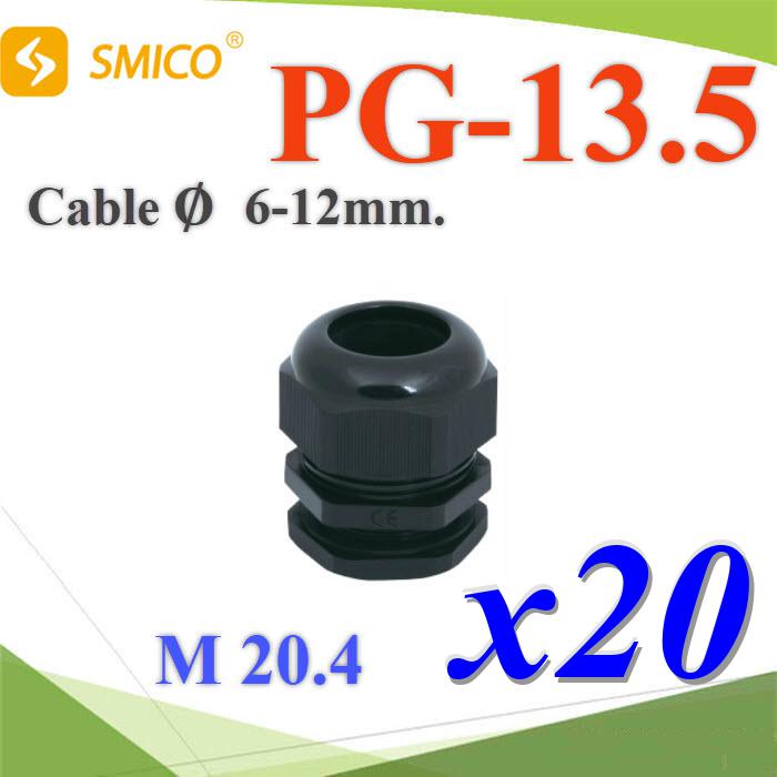 แพค 20 ชิ้น เคเบิ้ลแกลนด์ PG13.5 cable gland Range 6-12 mm. มีซีลยางกันน้ำ สีดำ