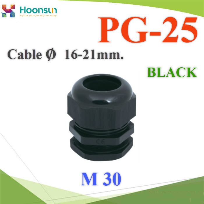 PG-25-BLACK เคเบิ้ลแกลนด์ PG25 cable gland Range 16-21 mm. มีซีลยางกันน้ำ สีดำ www.Solar-Thailand.co.th
