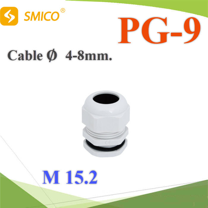 PG-9-WHITE เคเบิ้ลแกลนด์ PG9 cable gland Range 4-8 mm. มีซีลยางกันน้ำ สีขาว www.Solar-Thailand.co.th