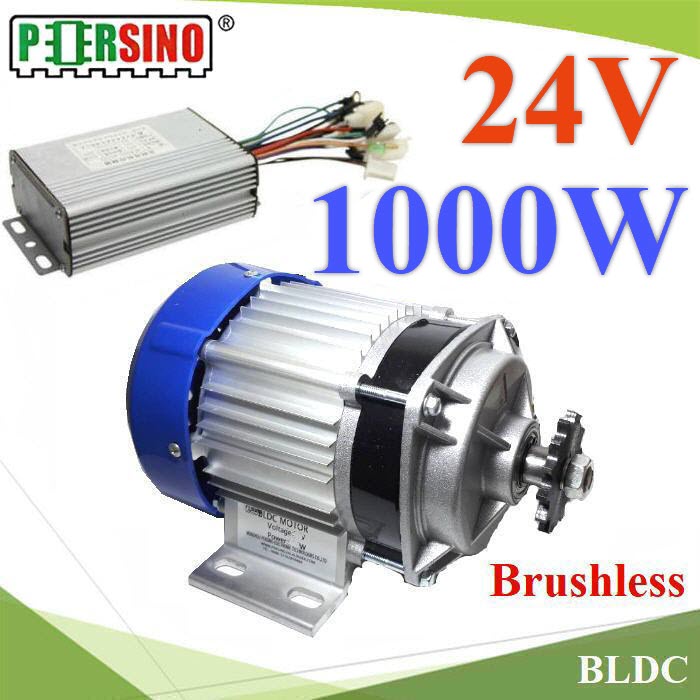 Brushless DC มอเตอร์ไร้แปลงถ่าน กำลังขับ 1000W 24V สั่งผลิตเป็นพิเศษ เป็นมอเตอร์เกียร์ ที่ทดรอบแล้ว สามารถนำไปติดตั้งเพื่อขับปั๊มน้ำ ปั๊มชัก ขับรถยนต์ไฟฟ้า ไปขับใบพัดเติมอากาศ หรือดัดแปลงมอเตอร์ ใช้งานได้หลายรูปแบบ สามารถทำงานได้ทั้งกลางวัน และกลางคืน กรณีใช้แบตเตอรี่ หรือทำงานเฉพาะตอนกลางวันสำหรับระบบโซลาร์เซลล์ มอเตอร์ BLDC เป็นชนิด Brushless DC แบบไม่มีแปรงถ่าน ความเร็วรอบ ภายในมอเตอร์บลัสเลส ขณะไมมีโหลด ประมาณ 2800 RPM ด้านหน้าแกนมอเตอร์ มีเกียร์ทดรอบแบบซันเกียร์ ทดรอบเฟือง ได้รอบสูงสุดประมาณ 450 รอบต่อนาที ตัวเรือนมอเตอร์ทำด้วยอลูมิเนียม มีครีบระบายความร้อนรอบตัวเรือน สามารถใช้งานได้นานกว่ามอเตอร์ DC ทั่วไป ด้านหลังมอเตอร์ มีพัดลม ระบายความร้อน ติดตั้งมาสำเร็จรูปกับมอเตอร์ การขับเคลื่อนมอเตอร์ มอเตอร์ BLDC (Brushless DC) จะมีกล่องควบคุมในการหมุน คอนโทรลสนามแม่เหล็ก S-N ดูดและผลักกัน สลับกันไปในแต่ละจังหวะ ทำให้มอเตอร์หมุน เร็วช้าได้ตามต้องการ