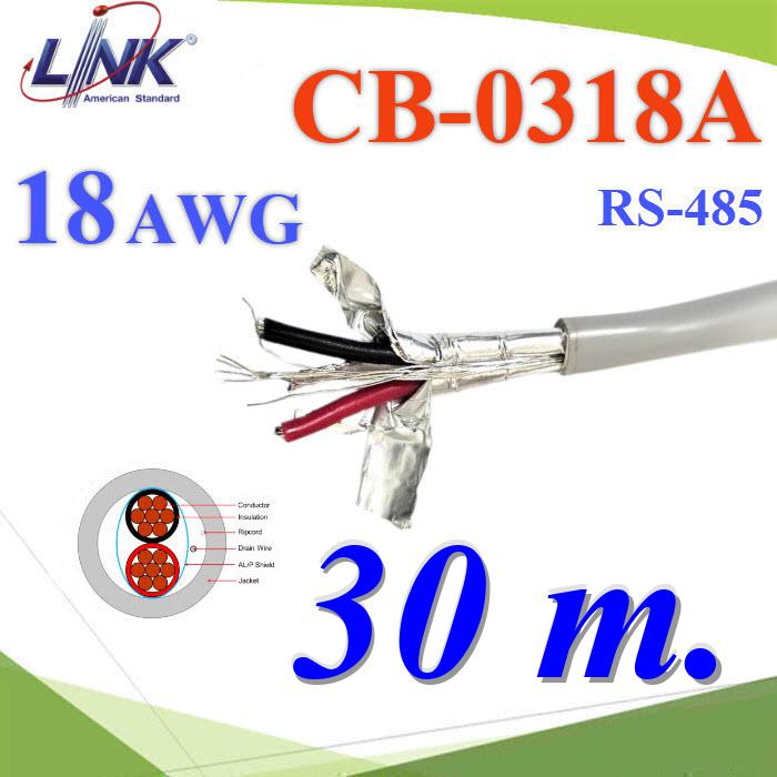 30 เมตร สายสัญญาณ RS485 RS232 CB-0318A 18AWG 2 เส้น 1คู่ สีเทาใช้ภายใน สายคอนโทรล