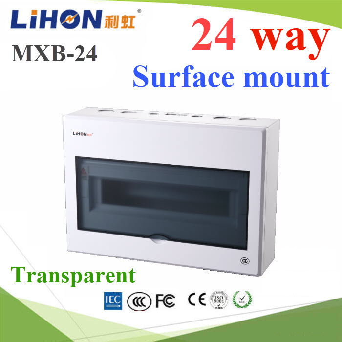 MXB 24 way metal distribution box, with transparent plastic cover. Easy identification Easy opening, Easy wiring , Easy adjustment, Long life for using Application widely used in low voltage distribution networks for power supplying of consumers and commercial buildings,ect. Features - High impact resistance material thick iron base, ABS or PC cover. - Automatically open and lock of lid,control by pressing the on-off botton on the cover. - white opaque and transparent blue cover are free for choice - Safe and full material copper terminal - Adjustable din-rail move ascend and descend - Ultra-large space box for moving and easy wiring - .Flush mounting and surface mounting available - The metal base with grounding blot