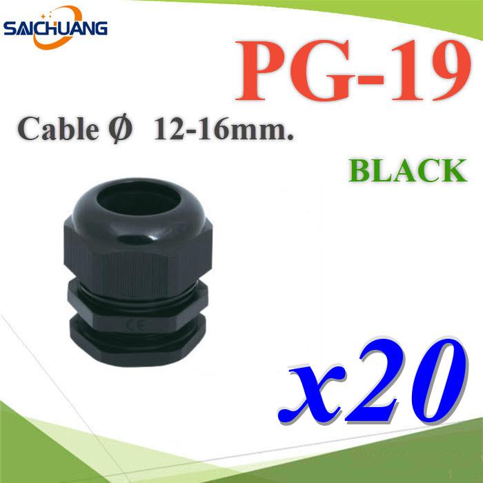 PG-19-BLACKx20 แพค 20 ชิ้น เคเบิ้ลแกลนด์ PG19 cable gland Range 12-16 mm. มีซีลยางกันน้ำ สีดำ www.Solar-Thailand.co.th