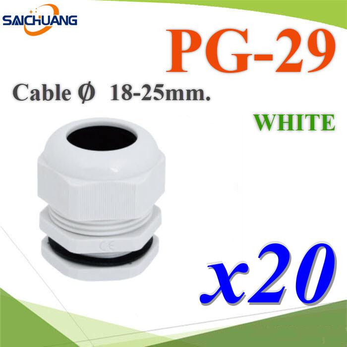 PG-29-WHITEx20 แพค 20 ชิ้น เคเบิ้ลแกลนด์ PG29 cable gland Range 18-25 mm. มีซีลยางกันน้ำ สีขาว www.Solar-Thailand.co.th
