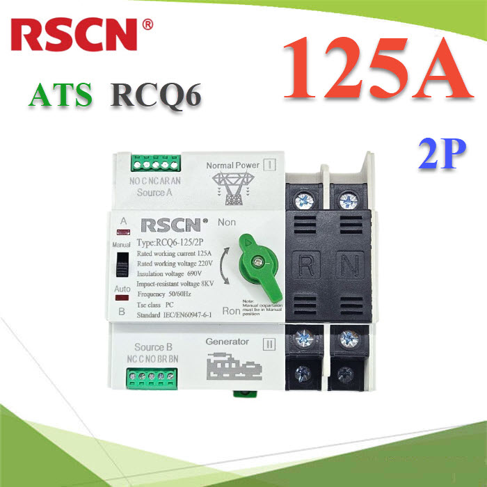 RCQ6-ATS-2P : ATS 125A 2P เบรกเกอร์สวิทช์ 2 ทาง AC สลับไฟอัตโนมัติ RCQ6 แบบเกาะราง Dinrial   สต็อก 0
