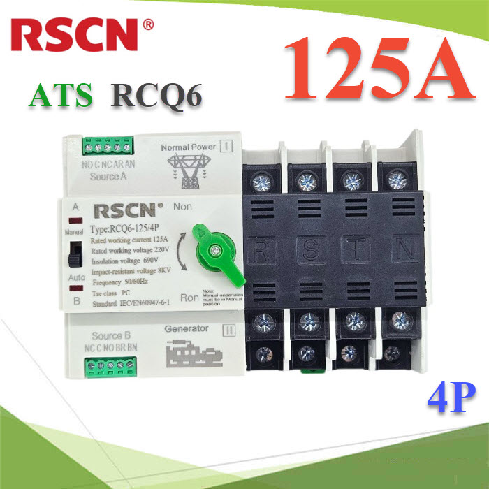 RCQ6-ATS-4P : ATS 125A 4P เบรกเกอร์สวิทช์ 2 ทาง AC สลับไฟอัตโนมัติ RCQ6 แบบเกาะราง Dinrial   สต็อก 0