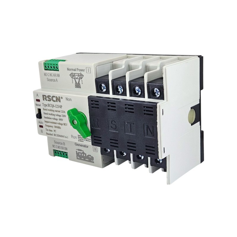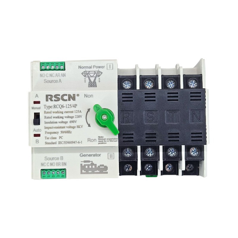 ATS 125A 4P เบรกเกอร์สวิทช์ 2 ทาง AC สลับไฟอัตโนมัติ RCQ6 แบบเกาะราง Dinrial