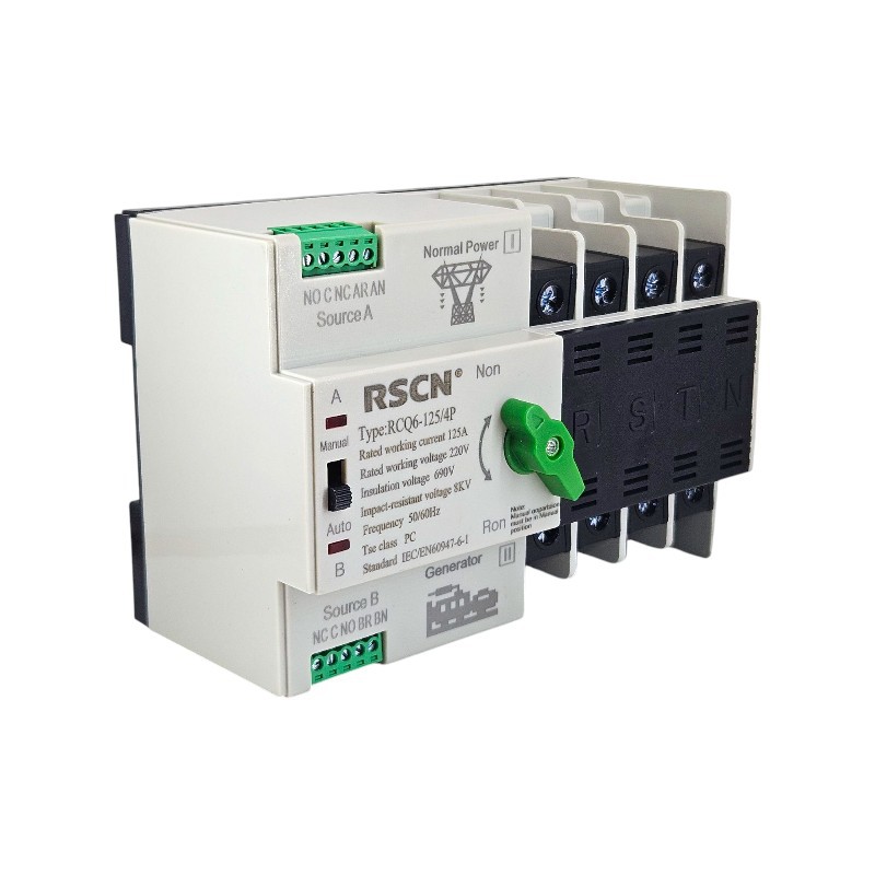 ขาย ATS 125A 4P เบรกเกอร์สวิทช์ 2 ทาง AC สลับไฟอัตโนมัติ RCQ6 แบบเกาะราง Dinrial เบรกเกอร์สวิทช์ 2 ทาง 4Pole ATS เปลี่ยนเส้นทางการจ่ายระบบไฟฟ้า สลับการจ่ายไฟฟ้า ระบบอัตโนมัติ 3 เฟส Automatic transfer switch MCB แบบติดตั้งรางปีกนก แบบเกาะราง Dinrial ยินดีให้คำปรึกษา ผู้สนใจ RCQ6 4Pole 125A ATS Dual Power Automatic transfer switch Three Phase