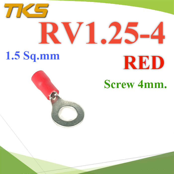 : หางปลากลม RV1.25-4 แบบมีฉนวน ข้อต่อสายไฟ 1.5 Sq.mm รูสกรู 4 mm (สีแดง 100 ชิ้น) สต็อก 11