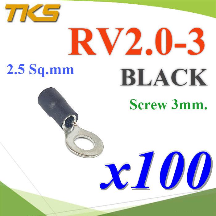 หางปลากลม RV2-3 แบบมีฉนวน ข้อต่อสายไฟ 2.5 Sq.mm รูสกรู 3 mm (สีดำ 100 ชิ้น)