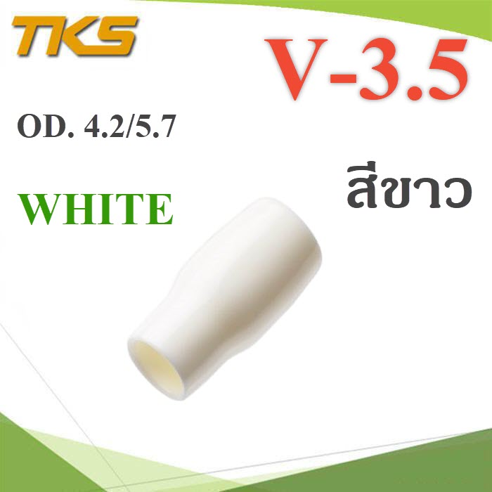 TKS-V-3-WHITE : ปลอกหุ้มหางปลา Vinyl V-3.5 สายไฟ OD. 4.2-5.7 mm. (สีขาว 100 ชิ้น)   สต็อก 95