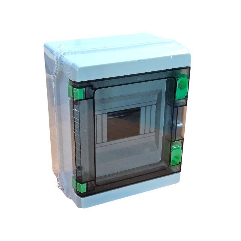 กล่องเบรคเกอร์พลาสติก คุณภาพสูง HA 5 ช่อง แบบกันน้ำ IP65 แบบDinrial รางปีกนก Electrical power distribution box HA Series Plastic waterproof IP65. Panel is the ABS material for the engineering, high strength, never change color. The transparent material is PC. Face covering of the distribution box adopts the push-type opening and closing mode, the face mask can be opened by pressing lightly, the self-locking positioning hinge structure is provided when opening. ขาย กล่องเบรคเกอร์ แบบกันน้ำ IP65 ทำด้วยพลาสติกวัสดุ ABS สำหรับงานด้านวิศวกรรม ความแข็งแรงสูง หน้ากากพลาสติกเปิดได้ด้วยการกดเบาๆ มียางซีลปัองกันที่ฝาหน้า มีช่องยึดจากด้านหลัง การติดตั้งง่าย ภายในติดตั้ง รางปีกผีเสื้อยึดเบรกเกอร์ MCB Din Rial แบบมาตรฐาน