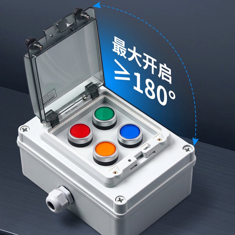 Waterproof Push Button Switch Box Enclosure Waterproof enclosure box for two 22mm push button switches. Made from high-quality ABS plastic with a protective transparent cover.