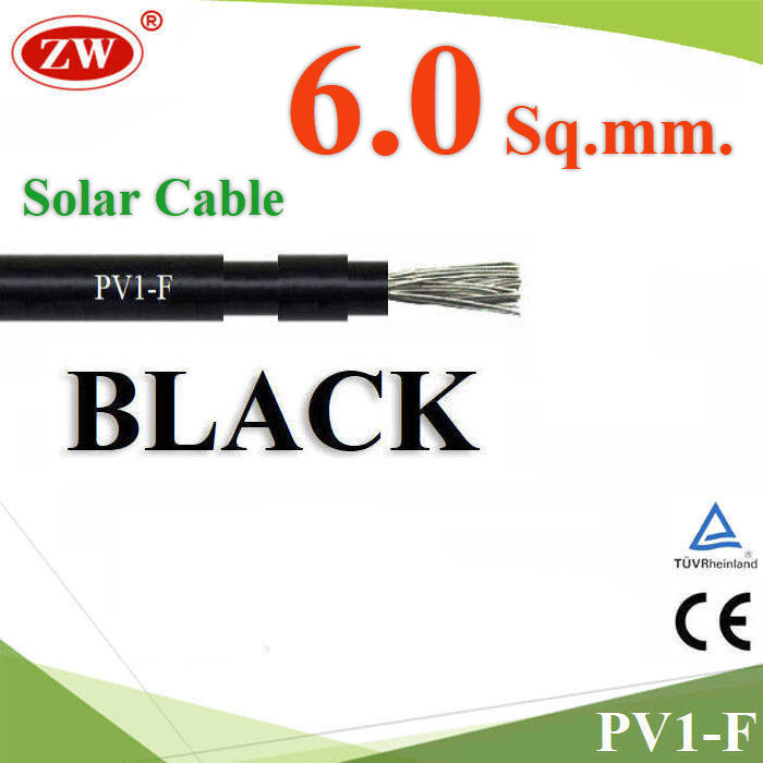 (ระบุจำนวน) สายไฟ DC Solar Cable สายไฟโซลาร์เซลล์ H1Z2Z2-K PV1-F 1x6.0 mm2 สีดำ PHOTOVOLTAIC CABLE (PV1-F) H1Z2Z2-K 6.0 Sq.mm. Solar DC Cable is specialized used in Solar PV system between the solar panel and Inverter or controller box. PVC Insulated PVC Sheathed Solar DC Cables (1000/1800V) meets or exceeds the requirements of all international standards. Product Material Tinned Copper XLPE insulation ขาย H1Z2Z2-K สายไฟ DC สำหรับ Solar Cell. PV1-F Solar Cable ขนาด 6.0 Sq.mm. รองรับกระแสไม่เกิน 70A เป็นสายไฟที่ออกแบบมาสำหรับงานโซลาร์เซลล์ พลังงานแสงอาทิตย์ ระบบไฟฟ้า DC โดยเฉพาะ ต่อจากแผงโซล่าร์ มายังชาร์จเจอร์ หรืออินเวอร์เตอร์ เป็นสายไฟทำด้วยทองแดงเคลือบดีบุกสีเงิน ทนอุณหภูมิสูง ฉนวนหุ้ม 2 ชั้น ภายในสาย PV1-F ประกอบด้วยสายเส้นฝอยเล็กๆ จำนวนมาก เพื่อให้ไฟฟ้ากระแสตรง (DC) ไหลผ่านได้ดีที่ผิวของทองแดง และสาย PV1-F เคลือบด้วยดีบุก เพื่อป้องกันการกัดกร่อน หรือตะใคร่เมื่อเกิดความชื้น มีค่าความสูญเสียการไฟฟ้าน้อยกว่า อายุการใช้งานยาวนานมากกว่า 25 ปี