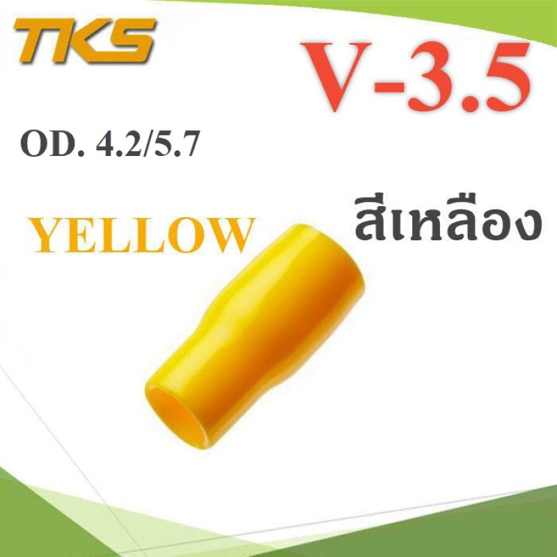 : ปลอกหุ้มหางปลา Vinyl V-3.5 สายไฟ OD. 4.2-5.7 mm. (สีเหลือง 100 ชิ้น) สต็อก 0
