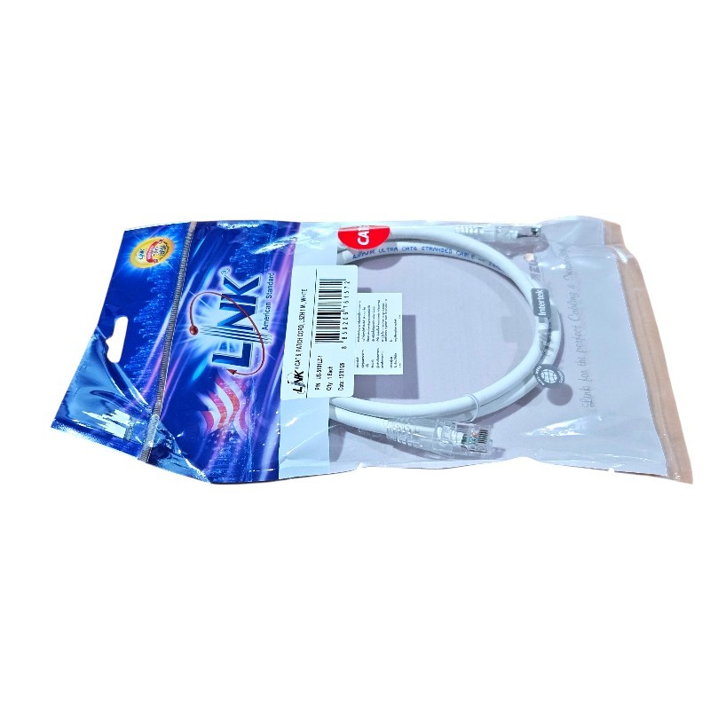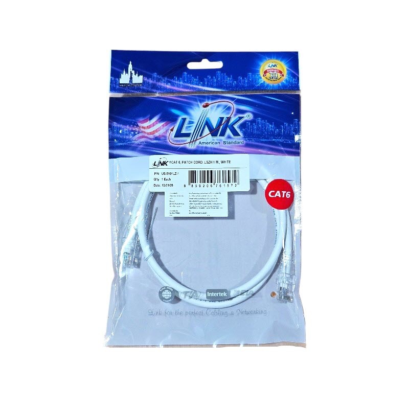 สายแลนสำเร็จรูปเข้าหัว RJ45 แบรนด์ Link แท้ รุ่น US-5101LZ-1 มาตรฐาน CAT 6 ความยาว 1 เมตร สีขาว (White)