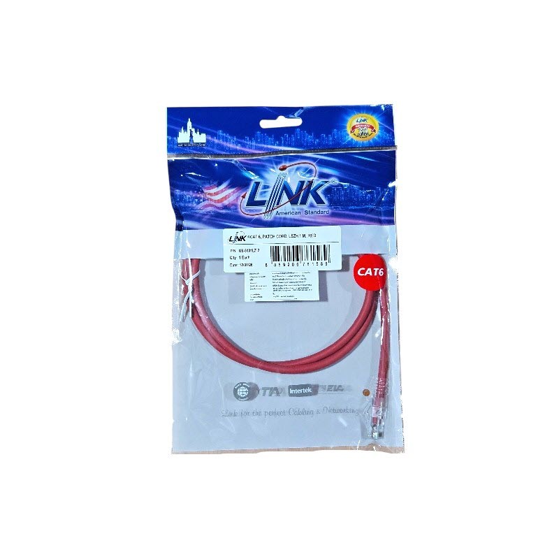 1 เมตร สายแลนสำเร็จรูป Link CAT6 หัวสาย RJ45 LSZH สีแดง
