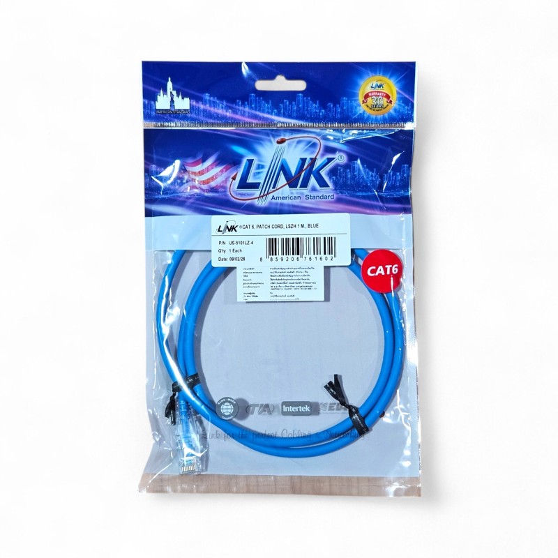 1 เมตร สายแลนสำเร็จรูป Link CAT6 หัวสาย RJ45 LSZH สีน้ำเงิน