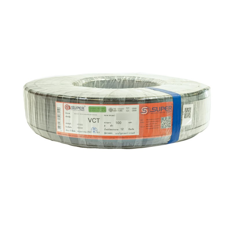 สายไฟฟ้า VCT สายไฟกลม 4 แกน ภายในประกอบด้วยเส้นลวดตัวนำที่ทำด้วยทองแดงฝอย หุ้มฉนวนพีวีซี นำมารวมแกน และเปลือกหุ้มพีวีซีอีกชั้นหนึ่ง คุณสมบัติอ่อนตัว ทนต่อสภาพการสั่นสะเทือน ใช้งานทั่วไป ใช้ต่อเข้าเครื่องใช้ไฟฟ้า วางบนรางเคเบิ้ล ร้อยท่อฝังดิน หรือฝังดินโดยตรง ใช้งานที่แรงดันไฟฟ้าไม่เกิน 450/750 V. และอุณหภูมิตัวนำไม่เกิน 70 องศา